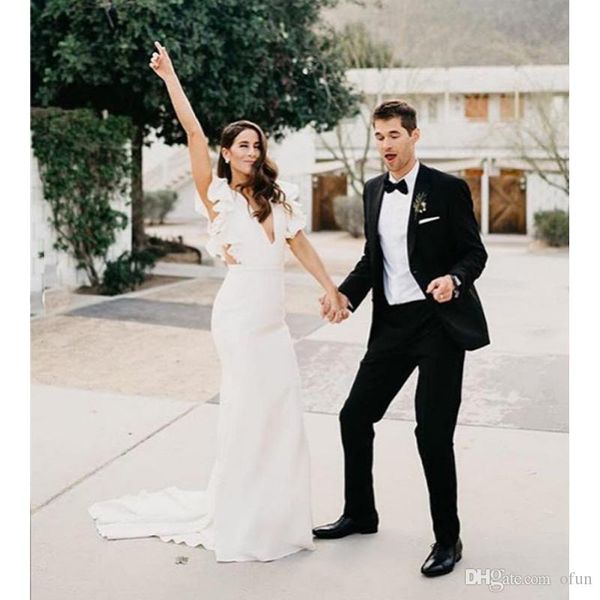 Details About Simple Mermaid Wedding Dresses V Neck Backless With Ruffle Country Bridal Gowns