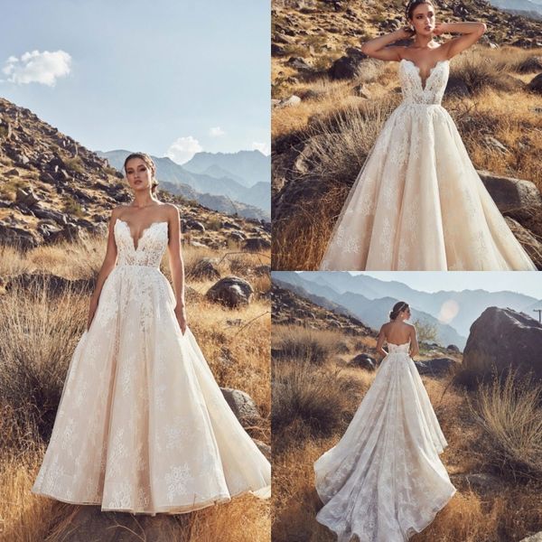 Country Style Lace Wedding Dresses Sweetheart Low Back