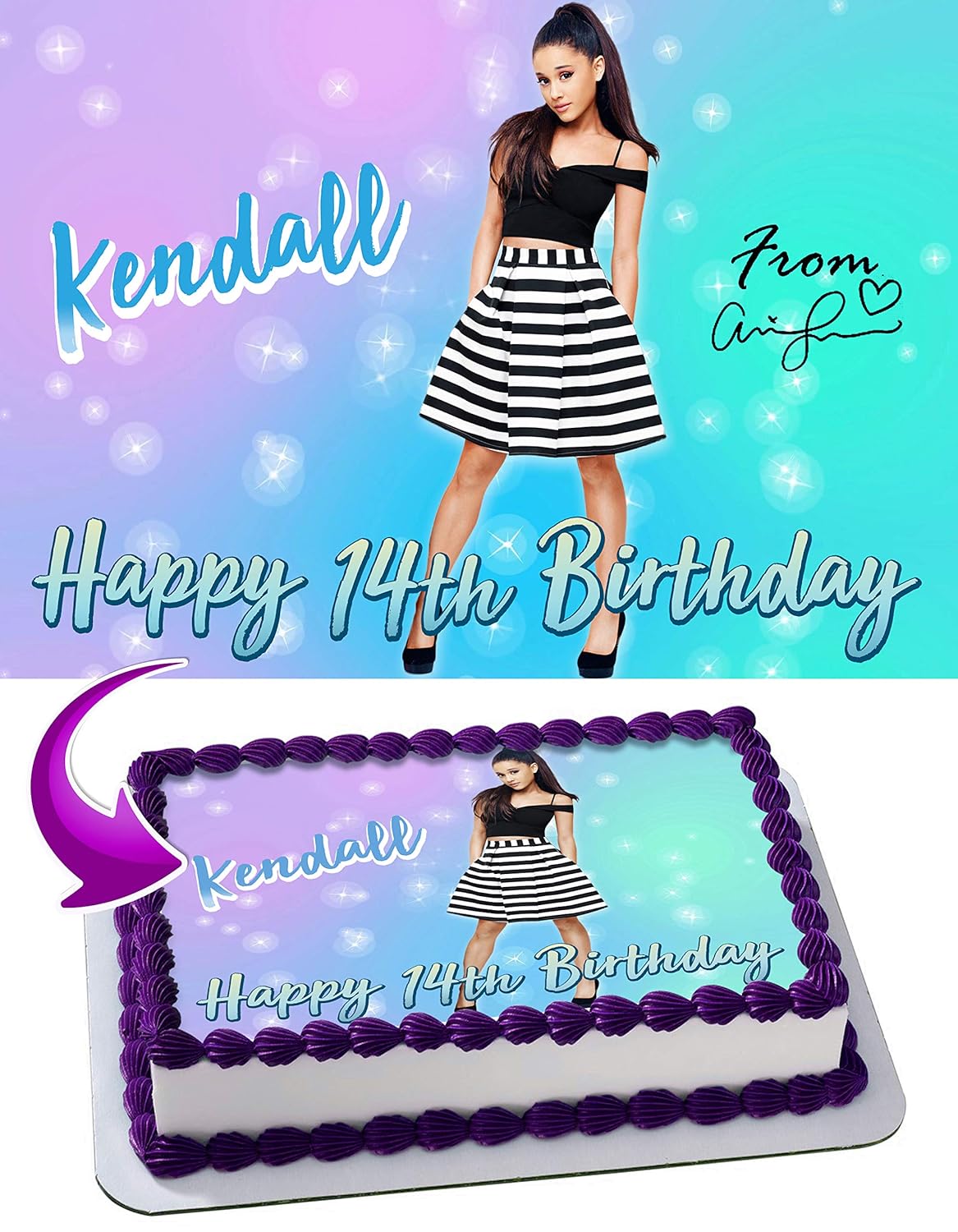 Ariana Grande Edible Image Cake Topper Personalized Birthday 1 4 Sheet Decoration Custom Sheet