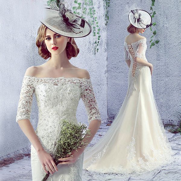 Korean Bride S Wedding Dress Slash Neck Lace Fish Tail Small Tail Wedding Dresses Wedding Dresses Las Vegas Wedding Dresses Online Shop From