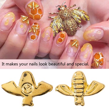 10pcs Gold Bee Design Nail Charm Alloy 3d Nail Art Decoration Spangles Manicure Ebay