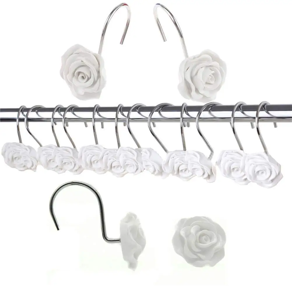 Finros Finros 12 Pcs Home Fashion Decorative Anti Rust Shower Curtain Hooks Rose Design Shower Curtain Rings Hooks Wh From Walmart Bhg Com Shop