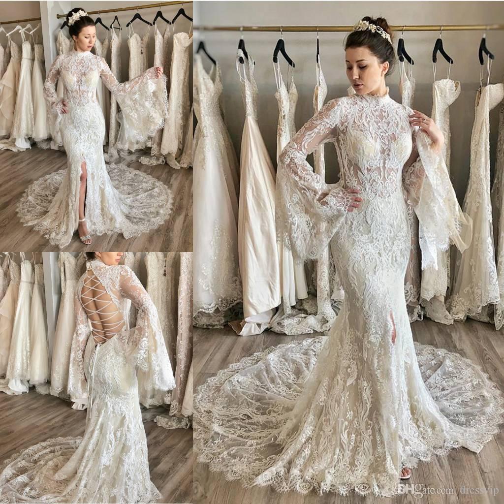 Dramatic Bell Sleeve Ivroy Lace Long Bridal Gown With Train From Modsele