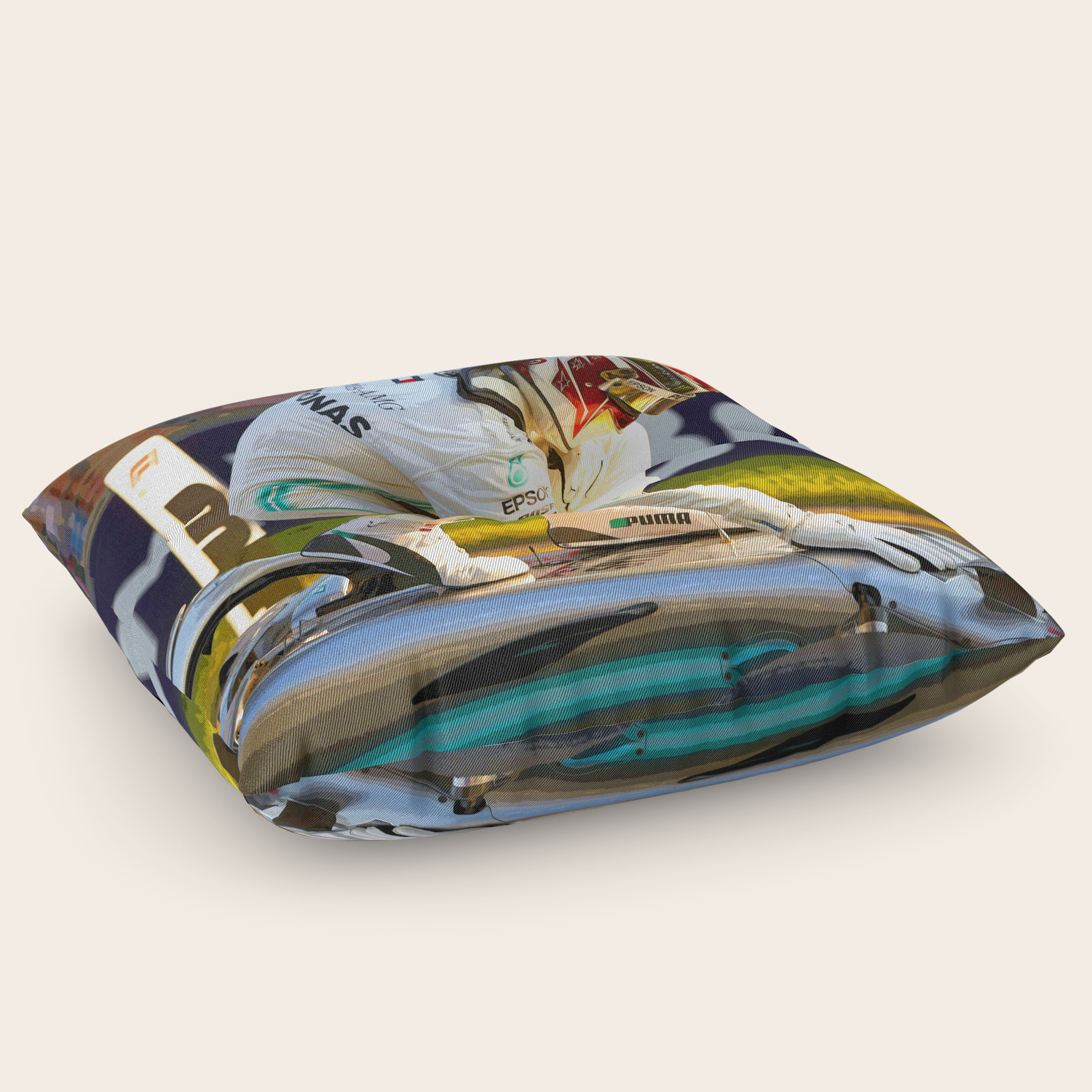 Lewis Hamilton Thanking His Car For Pole Position Floor Pillow